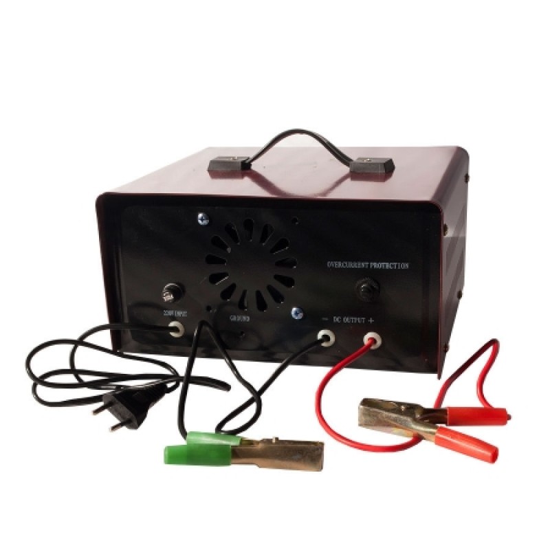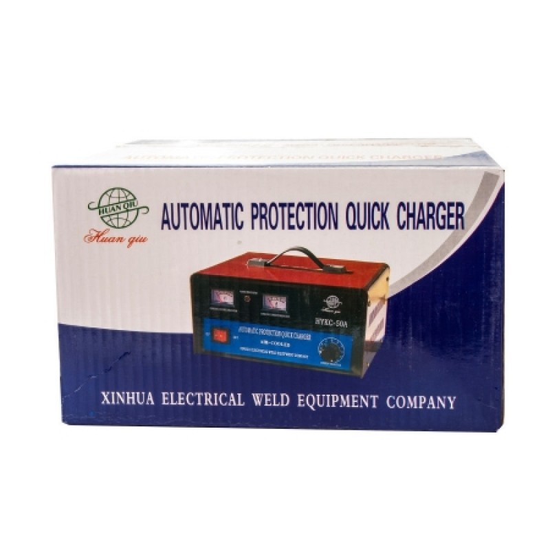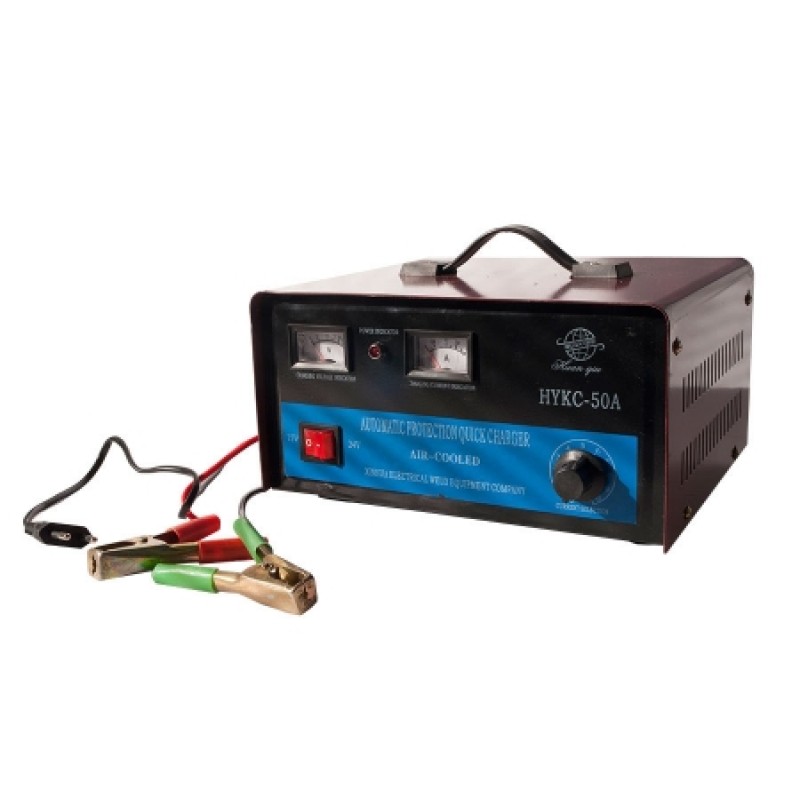 Ο φορτιστής HUAN QIU HYKC-50A έχει μια πολύ απλή λειτουργία. Ο μοχλός επιλέγει την τάση μπαταρίας 6 - 12 ή 24 βολτ και ο περιστροφικός διακόπτης ρυθμίζει το ρεύμα κατά τη φόρτιση.
