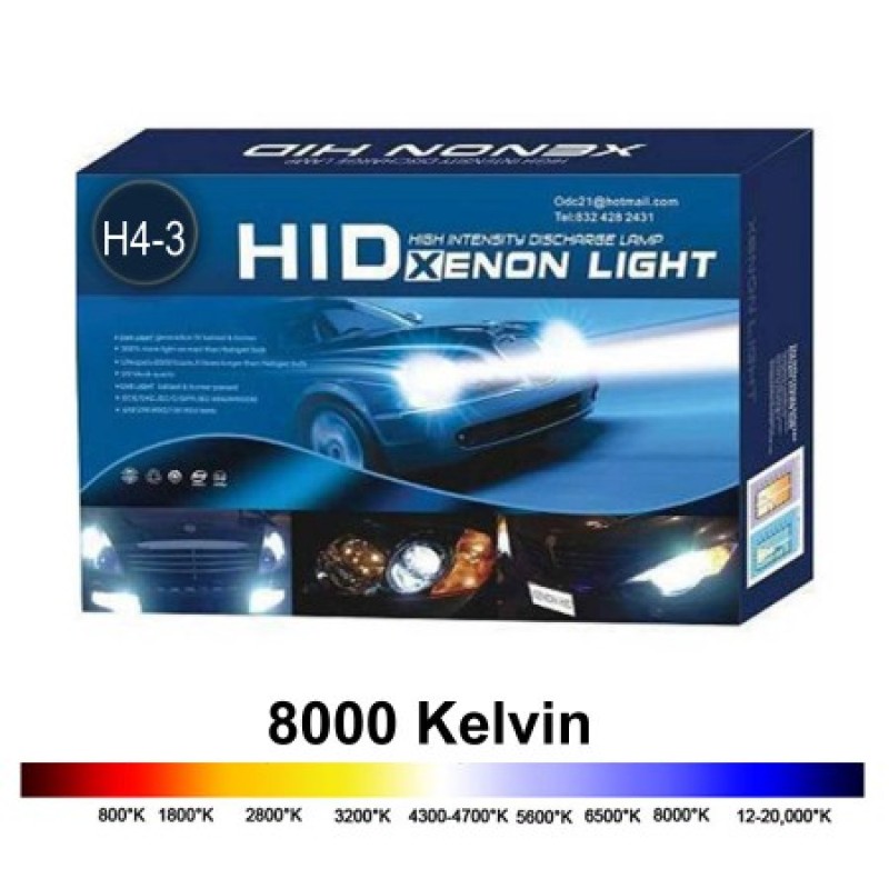 Φώτα XENON H4-3 Αυτοκινήτου – Πλήρες Kit H.I.D.8000k 35W. Απλά αντικαταστήστε τους συμβατικούς λαμπτήρες με αυτούς του κιτ και απολαύστε την οδήγηση με το δυνατό και καθαρό φως αυτών τον ΧΕΝΟΝ λαμπτήρων !
