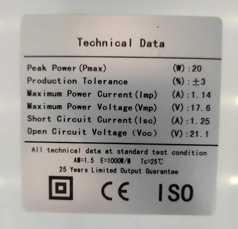 Open Circuit Voltage (Voc)21.1 V