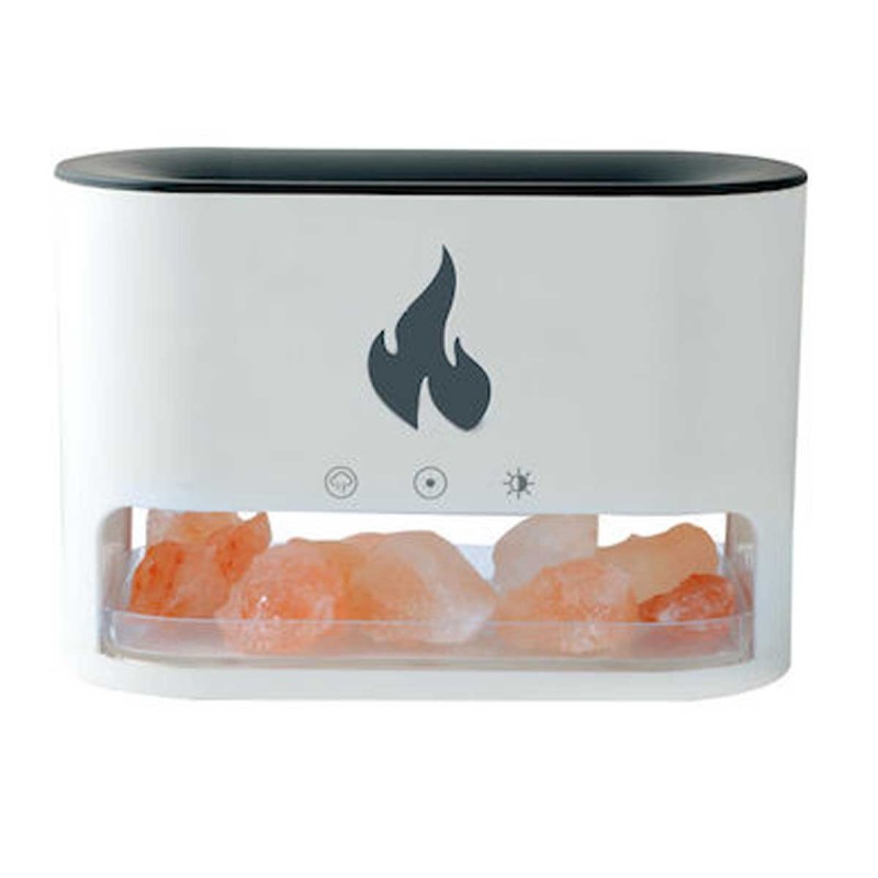 • Υγραντήρας Υπερήχων & Διαχυτής Αρώματος Κρυσταλλικού Αλατιού με Πολύχρωμο LED Φως Φλόγας