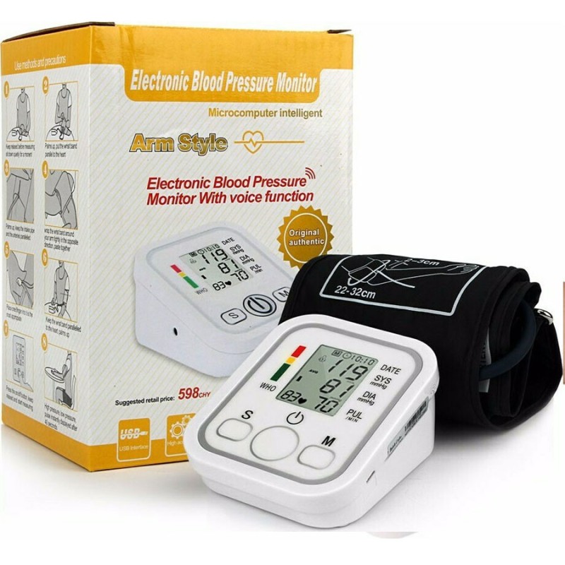 Ψηφιακό Πιεσόμετρο Μπράτσου που μετράει τη συστολική πίεση (SYS), τη διαστολική πίεση (DIA) και τους παλμούς της καρδιάς.