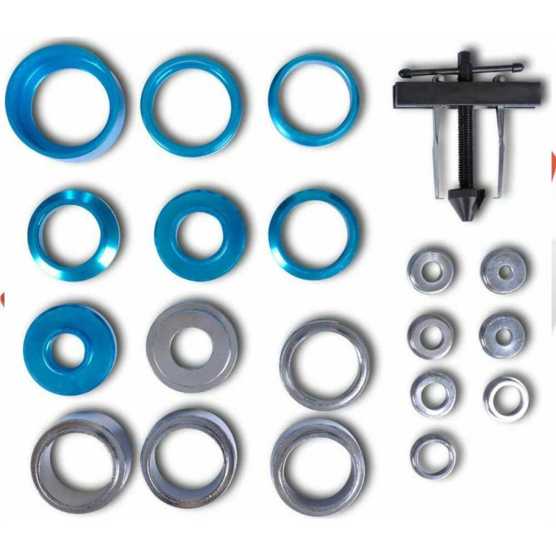 Αυτό το κιτ αφαίρεσης/εγκατάστασης τσιμουχών λαδιού στροφάλου είναι σχεδιασμένο για καθολική χρήση καλύπτοντας μια ευρεία γκάμα αυτοκινήτων με τσιμούχες λαδιού μεταξύ 21,5 χιλ. και 64 χιλ. σε διάμετρο. Οι μπλε προσαρμογείς τσιμούχας είναι κατασκευασμένοι από αλουμίνιο για να αποτρέψουν τη ζημιά του στροφάλου.
